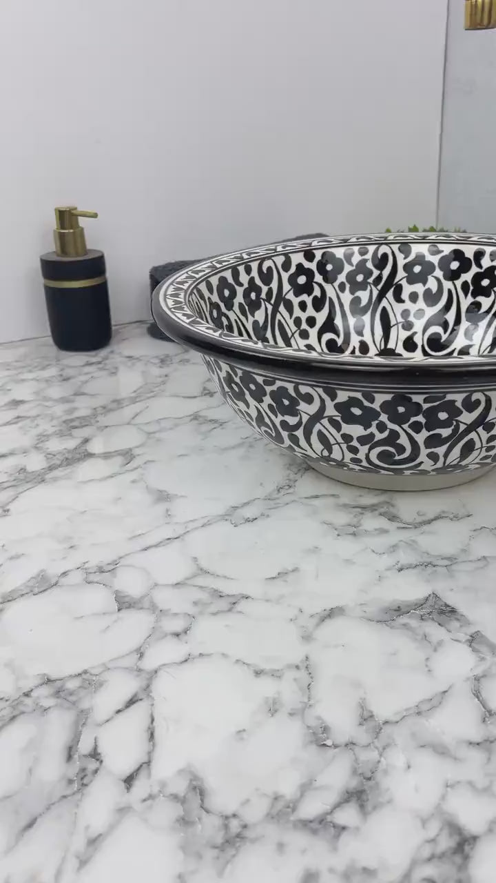 Bring a touch of artisanal elegance and oriental charm to your bathroom with our moroccan sink , entirely handcrafted and painted. Inspired by Morocco's rich heritage, each sink is a unique piece, crafted using traditional Moroccan ceramic techniques, renowned for their refined patterns and vibrant colors.