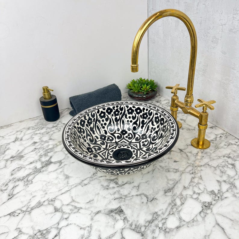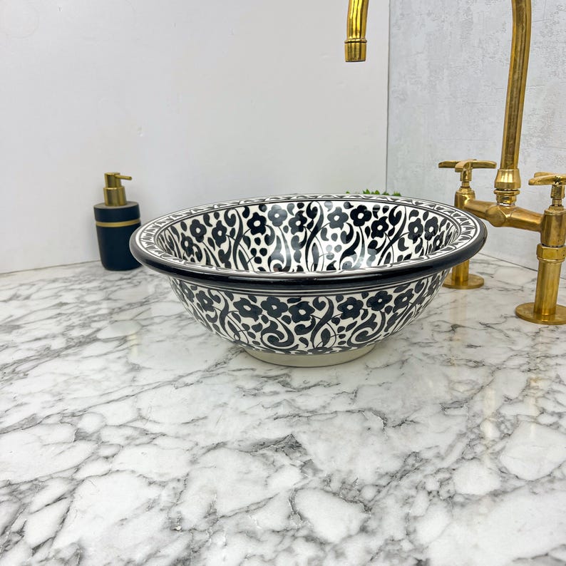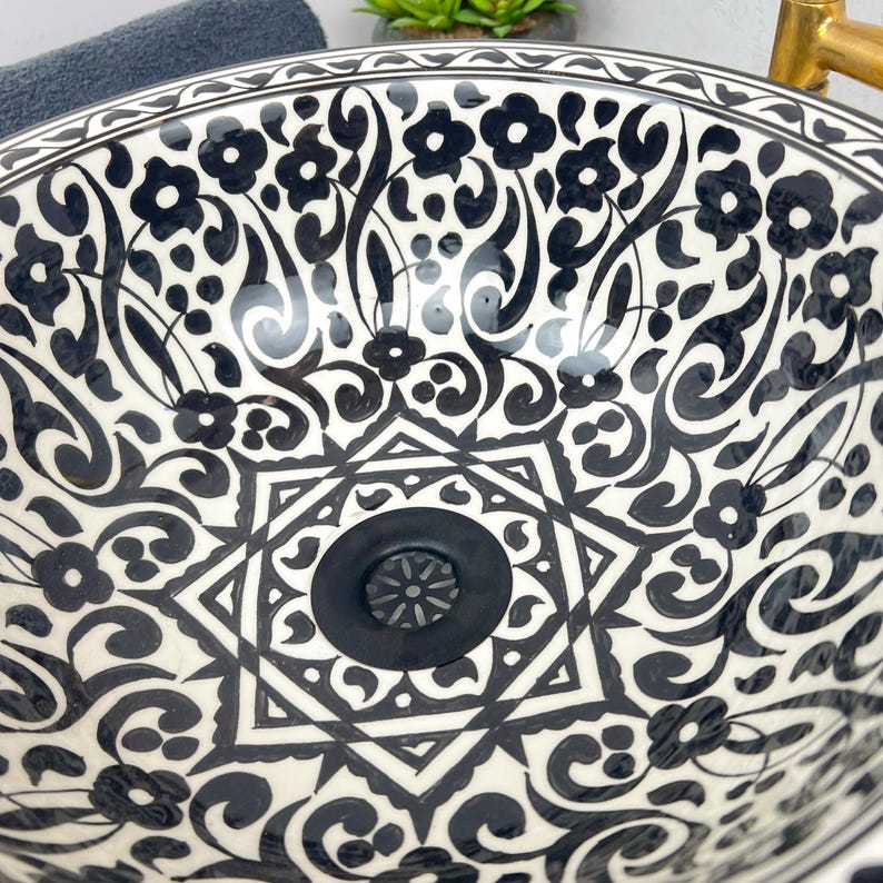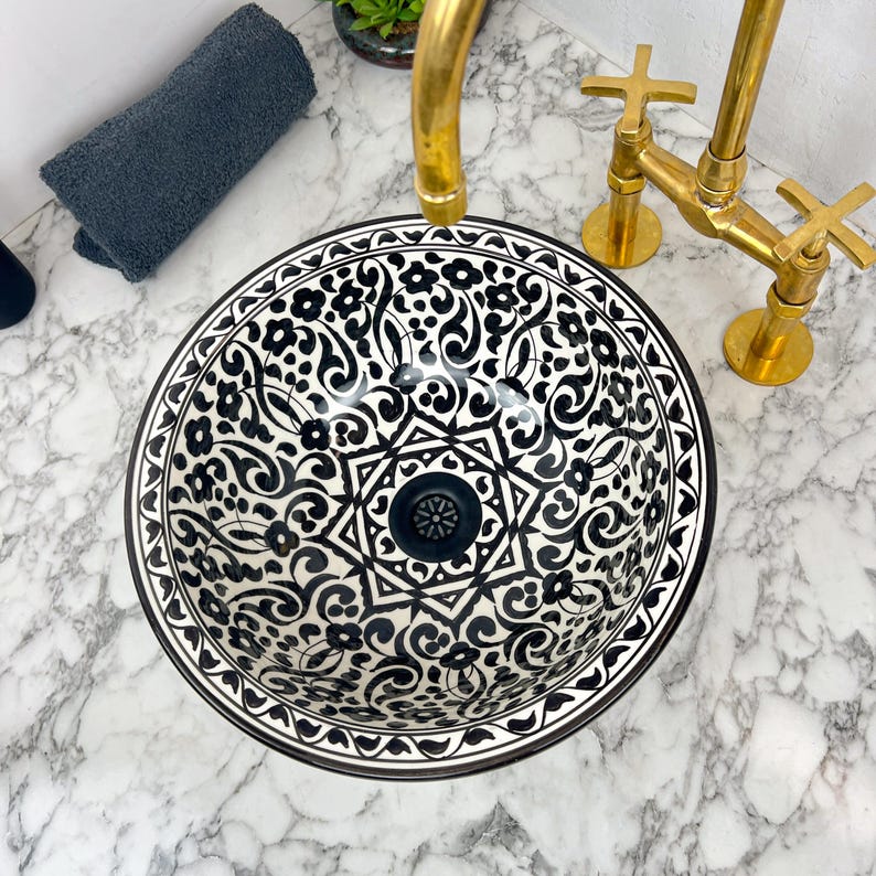 Incorporating this Moroccan ceramic sink into your bathroom is a surefire way to personalize your space, creating an authentic ambiance. Redefine your bathroom with our hand-painted Moroccan ceramic sink, bringing a touch of oriental refinement.