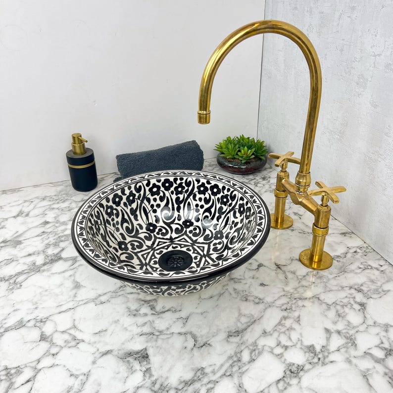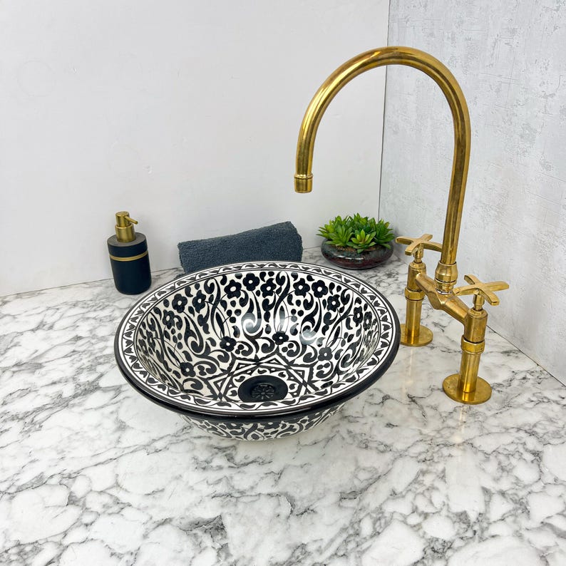 This unique moroccan sink , hand-decorated with natural colors, is much more than just a sink it's a true work of art that transforms your space into a warm, authentic, and characterful space. Its unique design evokes oriental refinement while blending perfectly into modern or traditional interiors.