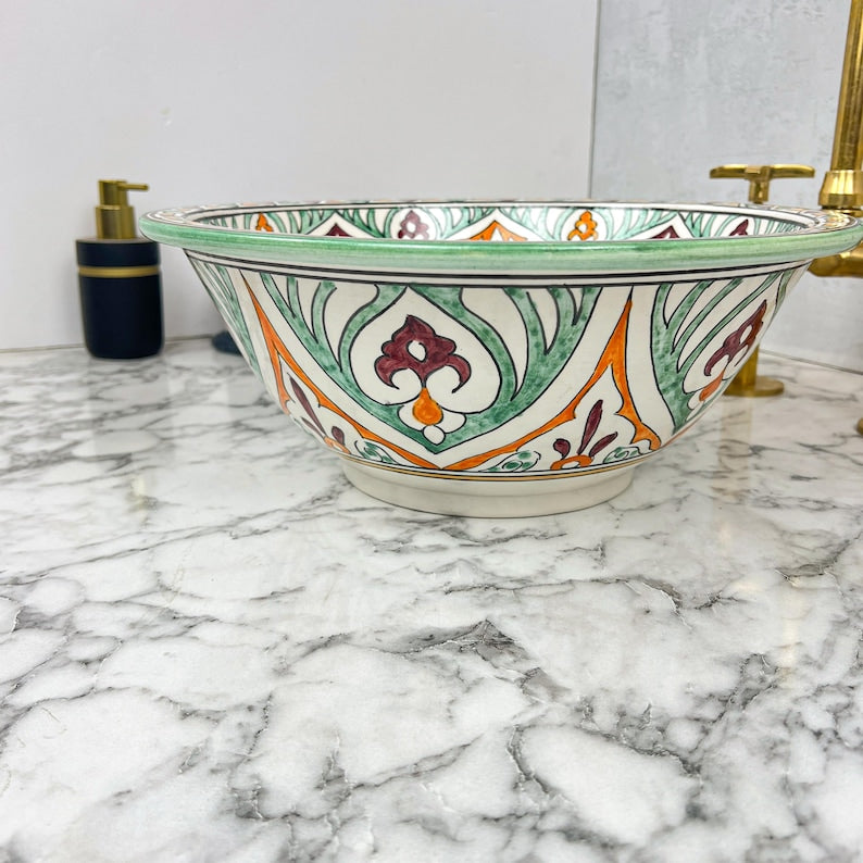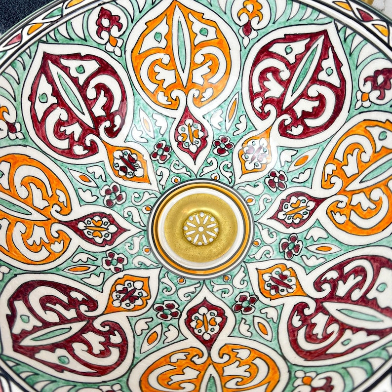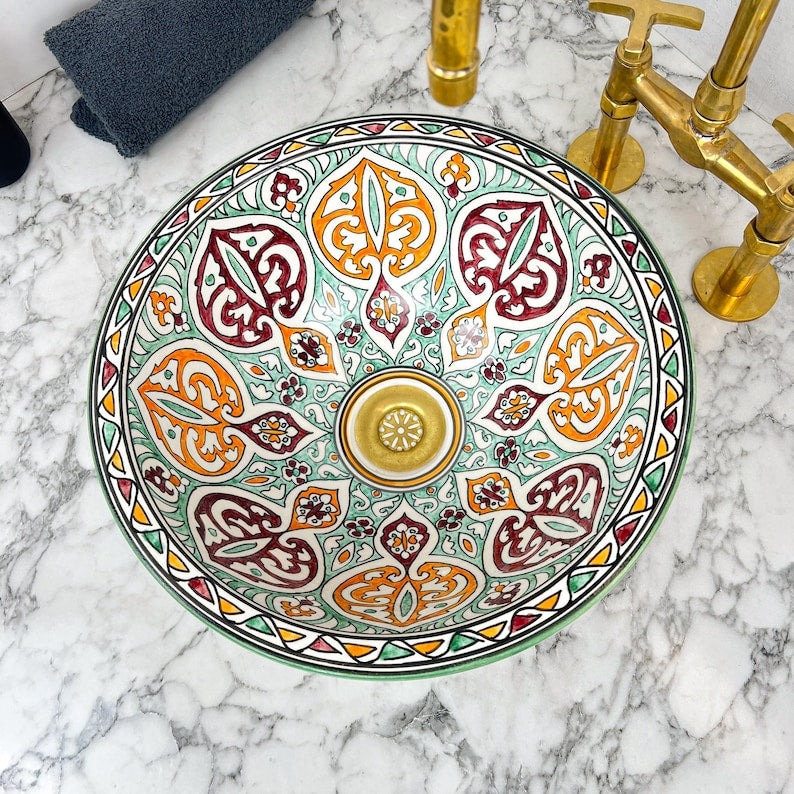 Bring a touch of artisanal elegance and oriental charm to your bathroom with our moroccan sink , entirely handcrafted and painted. Inspired by Morocco's rich heritage, each sink is a unique piece, crafted using traditional Moroccan ceramic techniques, renowned for their refined patterns and vibrant colors.