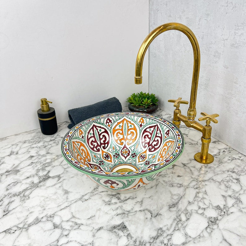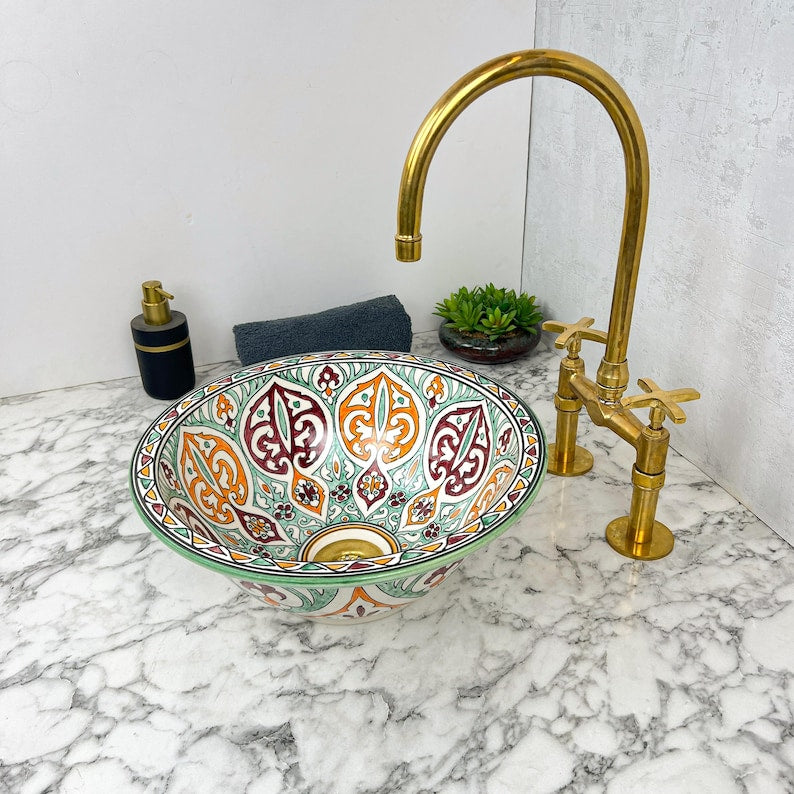 Adding this Moroccan sink to your bathroom isn't just an upgrade; it's a way to deeply personalize your space. It will instantly infuse an authentic Moroccan ambiance, creating an intimate connection with Morocco's rich culture and craftsmanship. Rediscover your bathroom with our hand-painted ceramic sink, a true symbol of oriental refinement that invites relaxation and meditation.