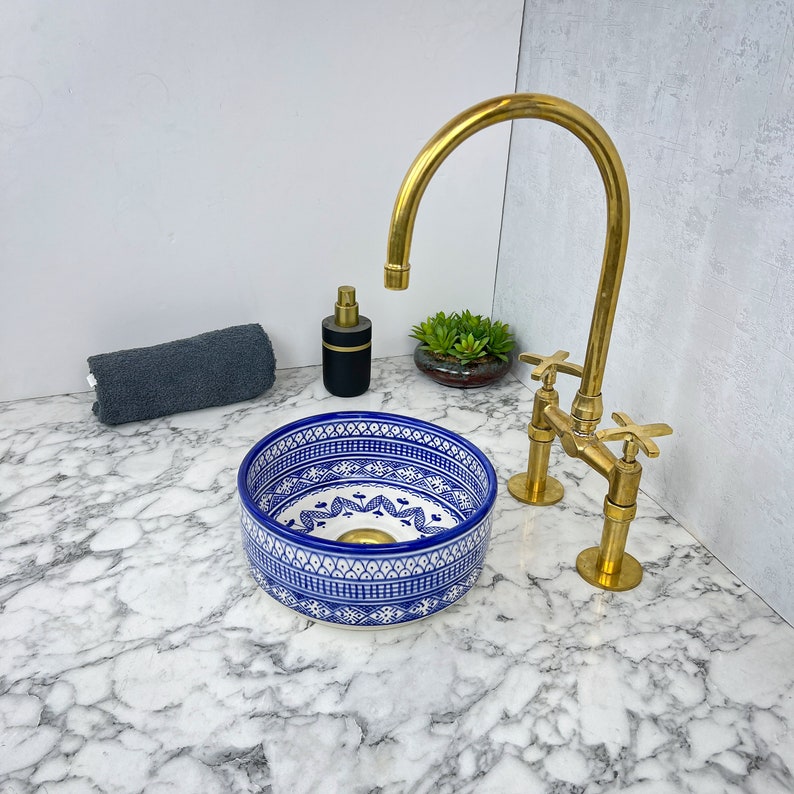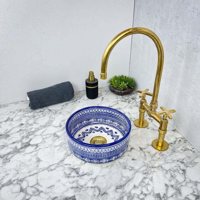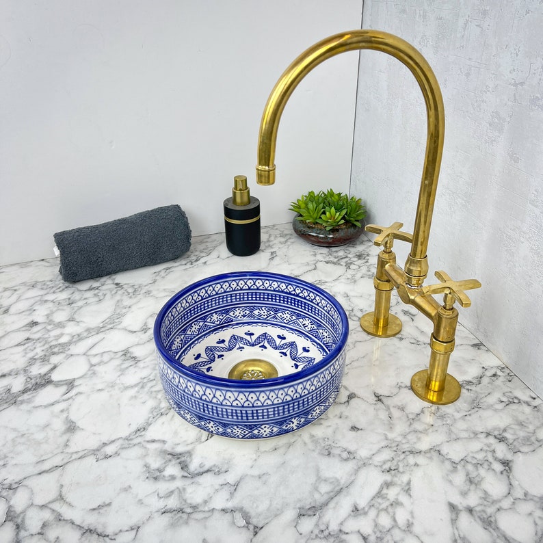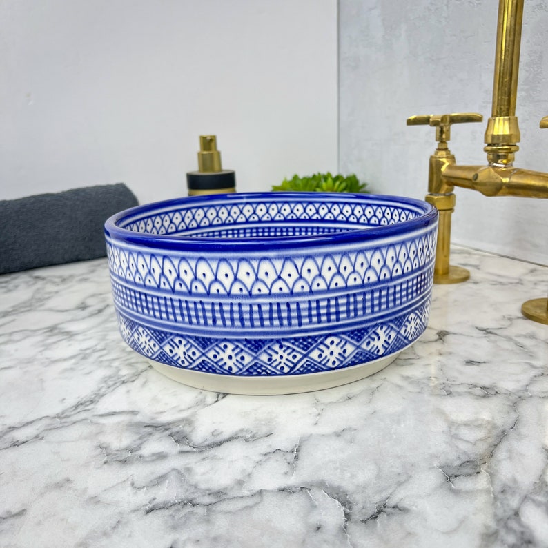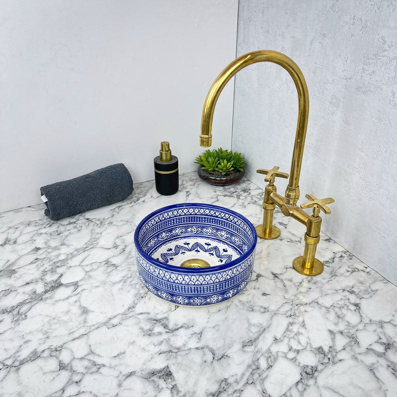 Incorporating this Moroccan ceramic sink into your bathroom is a surefire way to personalize your space, creating an authentic ambiance. Redefine your bathroom with our hand-painted Moroccan ceramic sink, bringing a touch of oriental refinement.