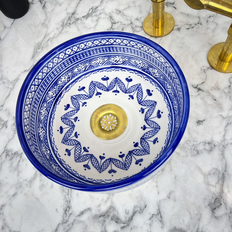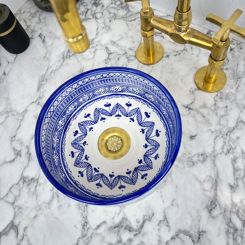 Bring a touch of artisanal elegance and oriental charm to your bathroom with our moroccan sink , entirely handcrafted and painted. Inspired by Morocco's rich heritage, each sink is a unique piece, crafted using traditional Moroccan ceramic techniques, renowned for their refined patterns and vibrant colors.